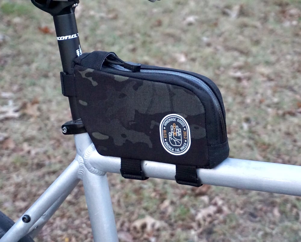 This sweet little bag will fill the area on your TT between your seat tube and TT. It's big enough to fit your phone, wallet, and some snacks.